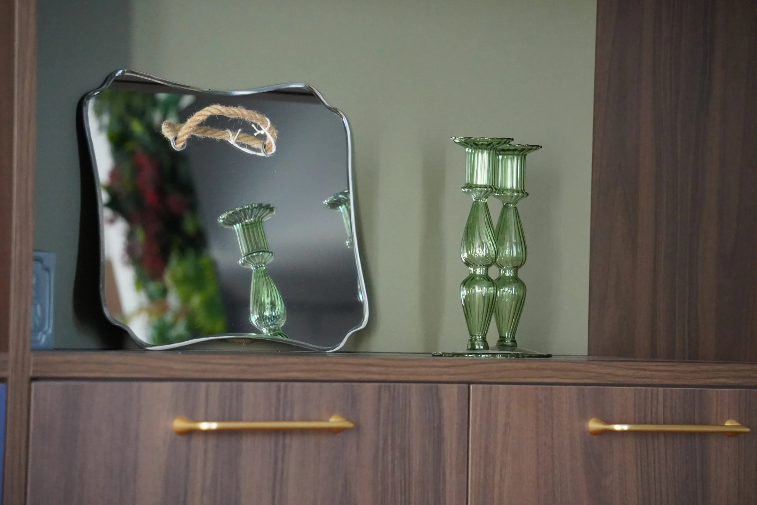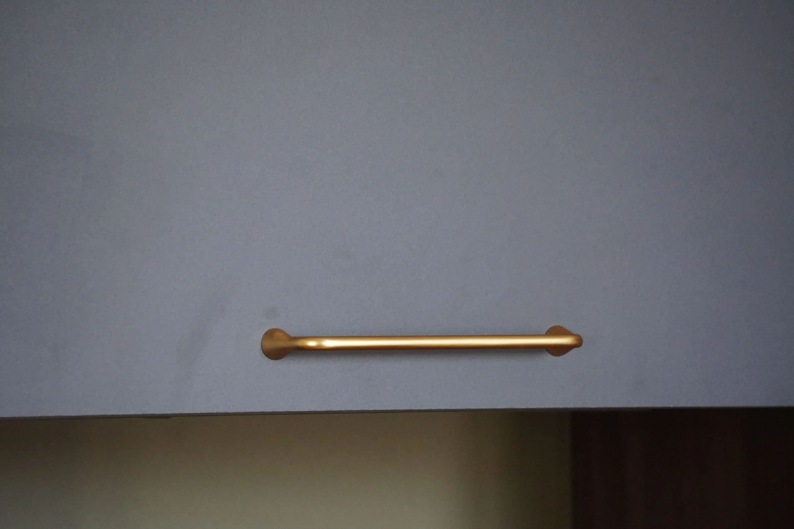 Les poignées de tiroirs aux finitions dorées ajoutent une note lumineuse et élégante. Ces détails délicats viennent souligner le design du mobilier et apportent une touche chic sans alourdir l’ensemble.