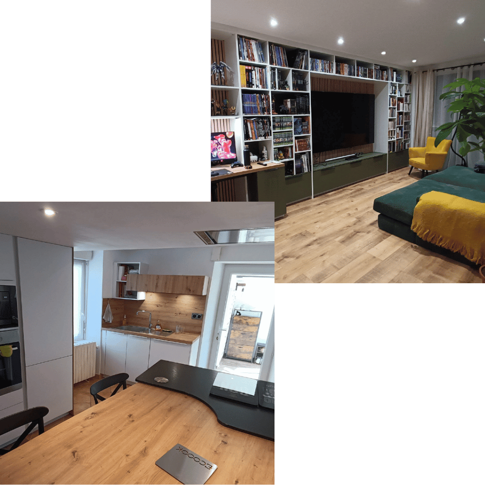 Depuis sa création, Ecoook a développé un concept unique d’aménagement intérieur, basé sur le sur-mesure et l’écoute attentive de chaque client. Au-delà de la simple installation de meubles, Ecoook conçoit des espaces de vie complets, pensés pour allier esthétique, fonctionnalité et confort au quotidien.